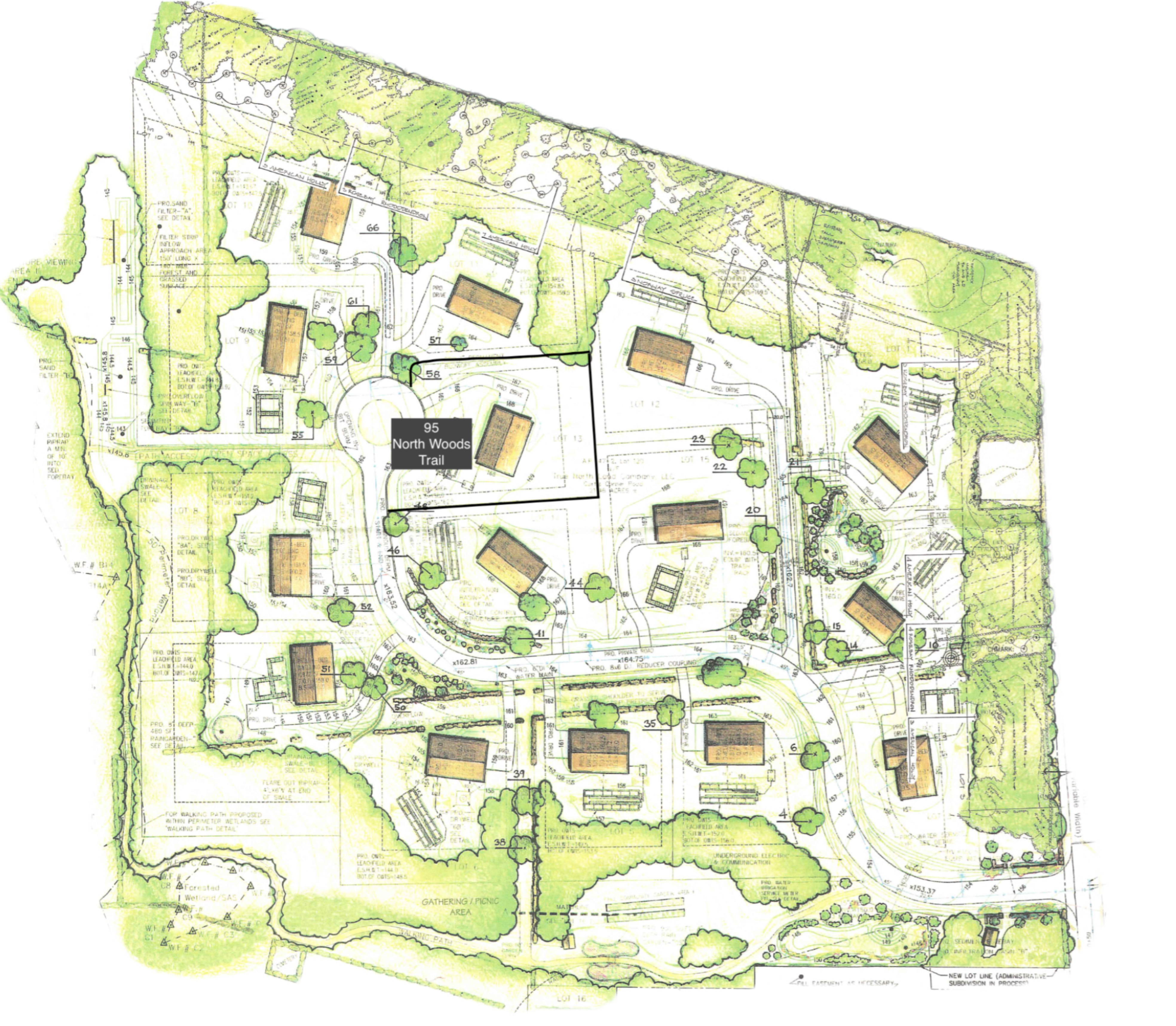 TO BE BUILT -  The Weston is a 2,530 sq. ft. custom single-level home in the desirable North Woods community of South Kingstown. Designed by Meridian Custom Homes, this residence offers 4 bedrooms, 2.5 baths, and a 2-car garage. The exterior highlights natural cedar shingle siding, stone accents, and a welcoming front porch with columns. Inside, an open floor plan with 9' ceilings and transom windows fills the home with natural light. The great room features a cathedral ceiling, wood-burning fireplace, and custom built-ins. The kitchen includes 42 cabinetry with glass doors, granite countertops, tiled backsplash, oversized island, walk-in pantry, breakfast area, and formal dining with custom wall detailing. The primary suite offers a reading alcove, walk-in closet, and spa bath with double sinks, soaking tub, and tiled shower. Three additional bedrooms and a family bath complete the private spaces. Additional features include hardwoods in main living areas, tile baths, laundry/mudroom, Navien on-demand hot water, and gas-fired warm air with central AC. Outdoor living is enhanced by a rear deck.